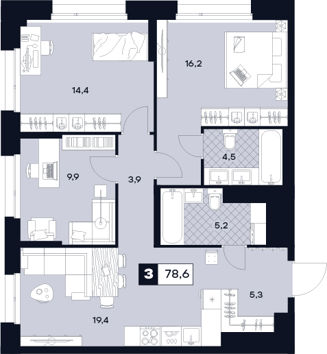 - № 216ЮТУ1, Секция 1, Этаж 19