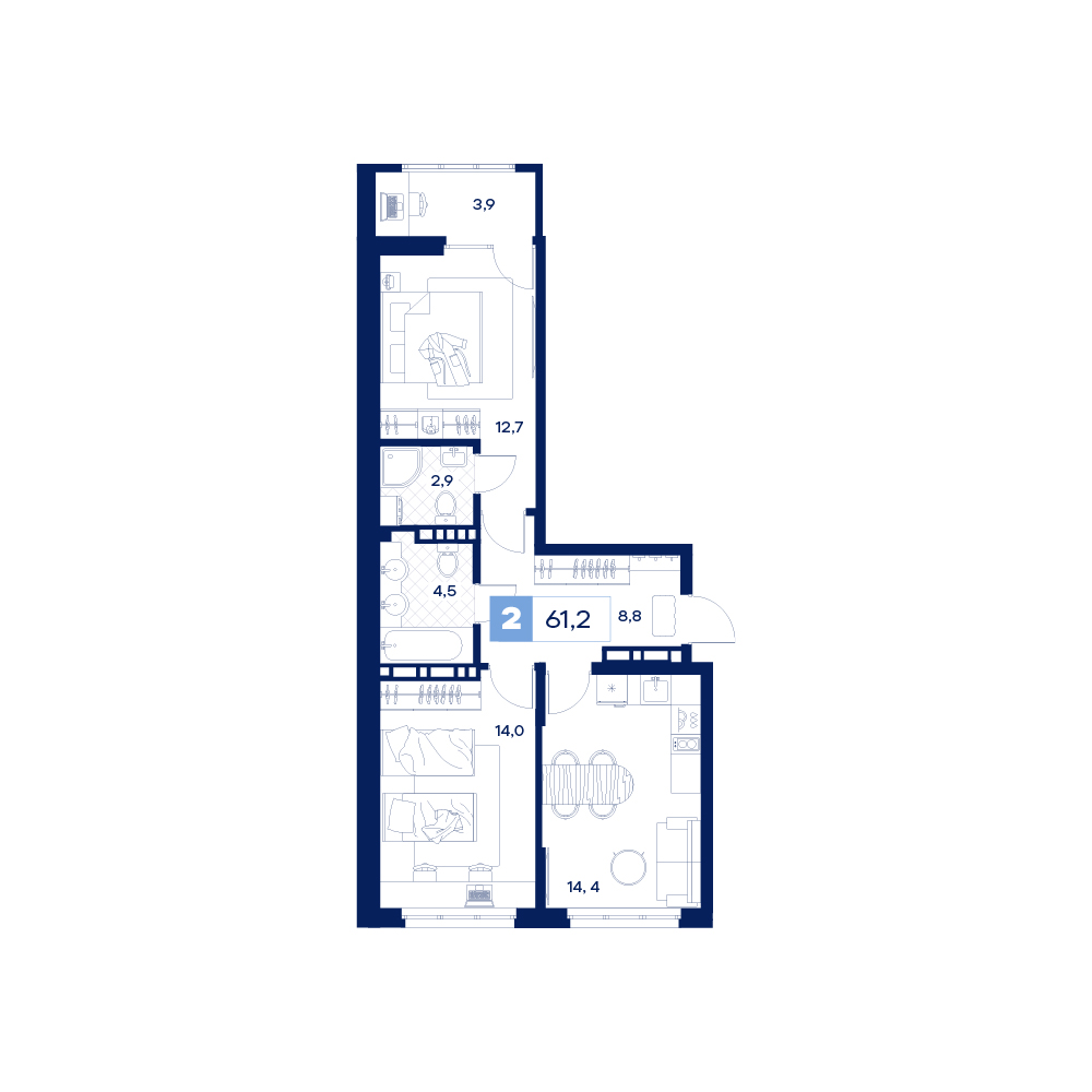 - +1 акция№ 7Дом Нойферта1, Секция 1, Этаж 2