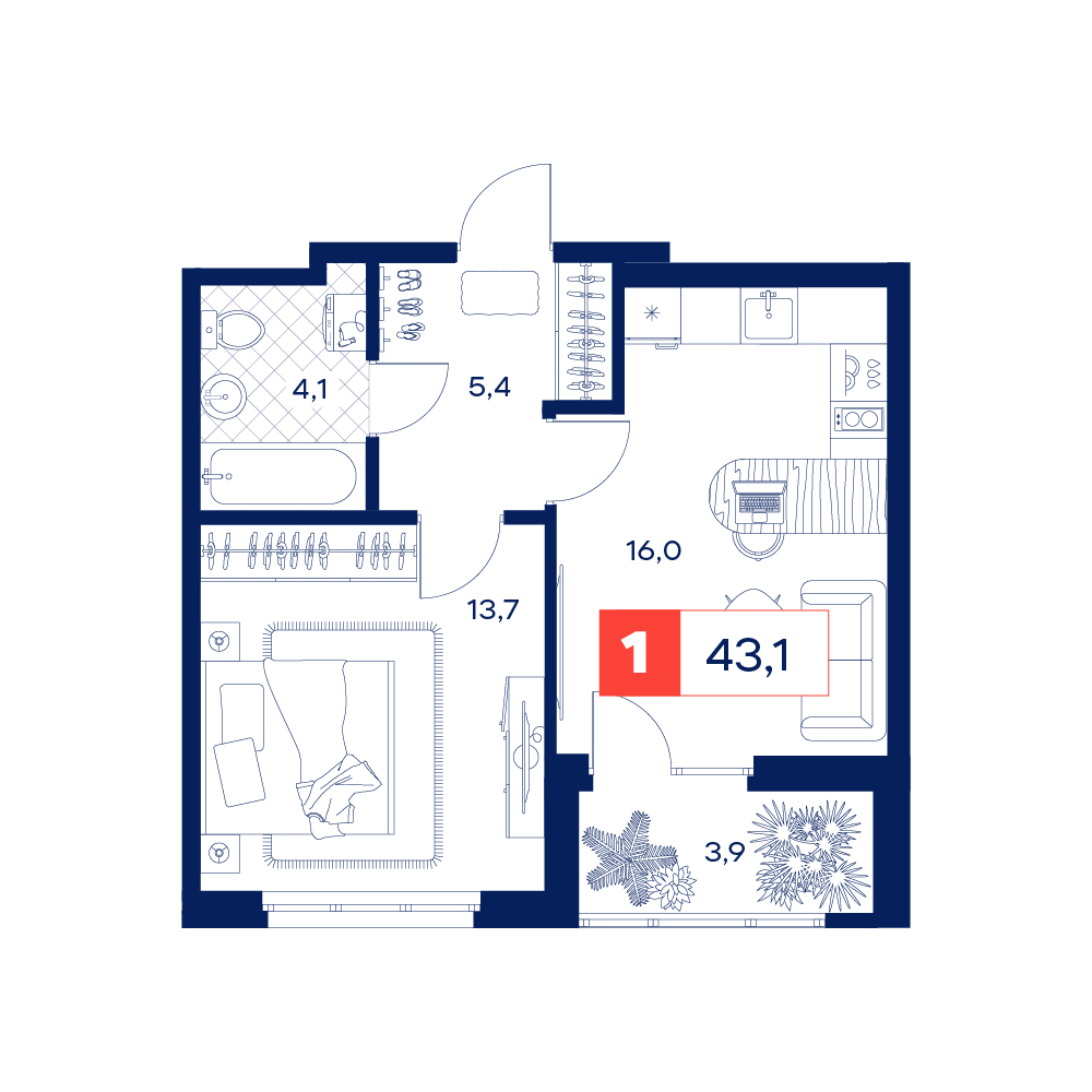 - +1 акция№ 41Дом Нойферта1, Секция 1, Этаж 7