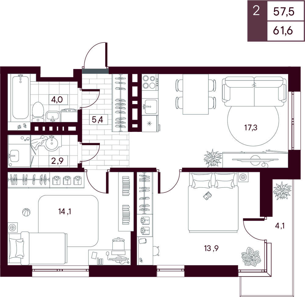 - +1 акция№ 4МАКСМАКС ГП 1.1 (1 оч.), Секция 1, Этаж 2