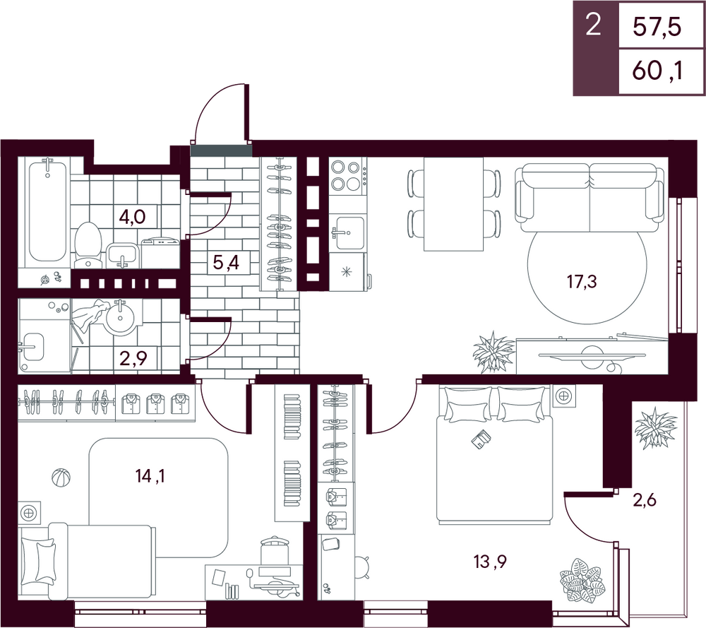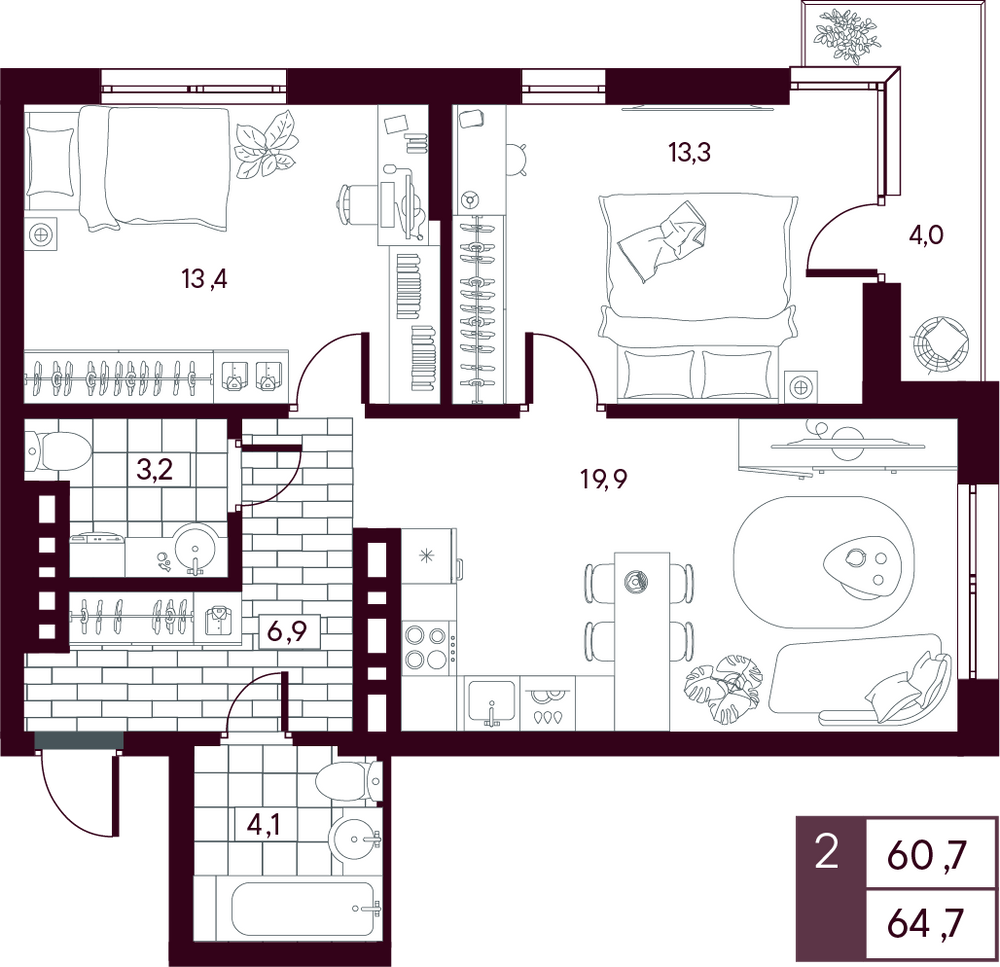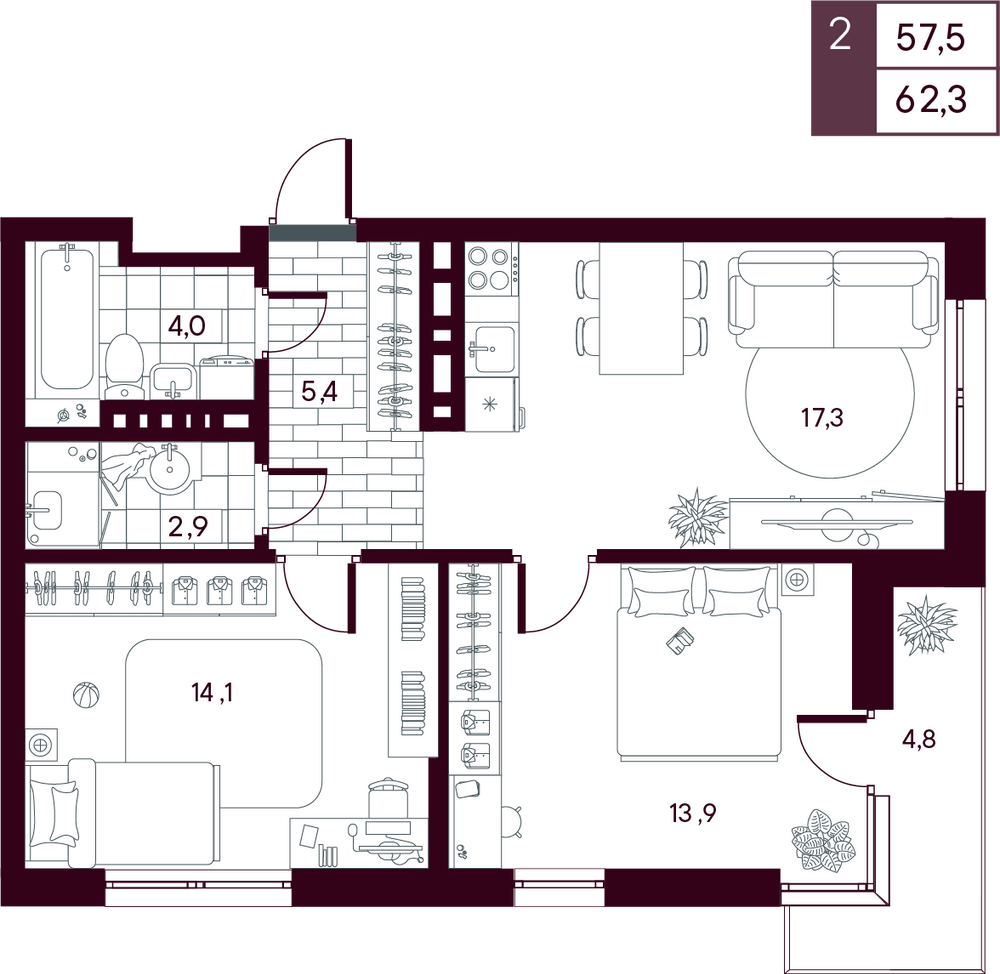 - +1 акция№ 54МАКСМАКС ГП 1.1 (1 оч.), Секция 1, Этаж 7
