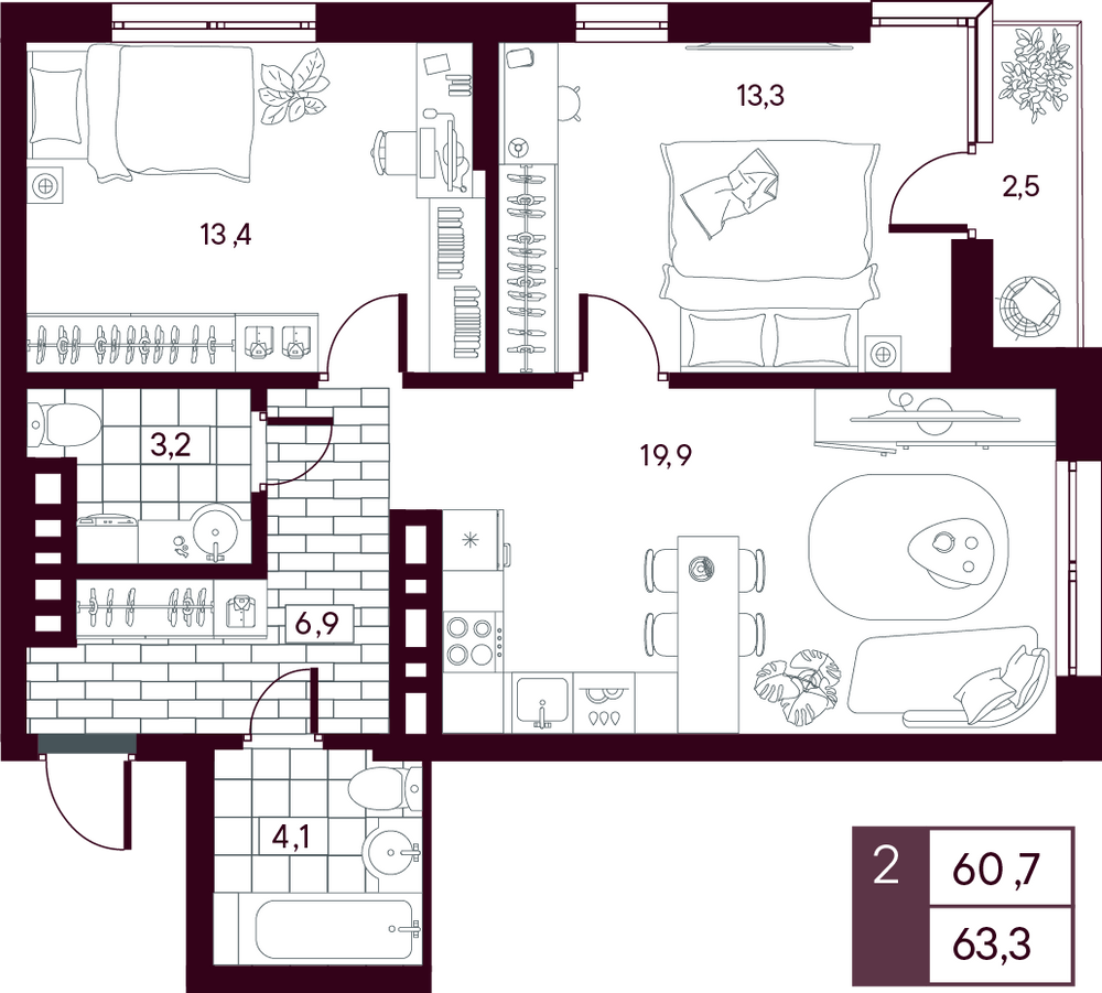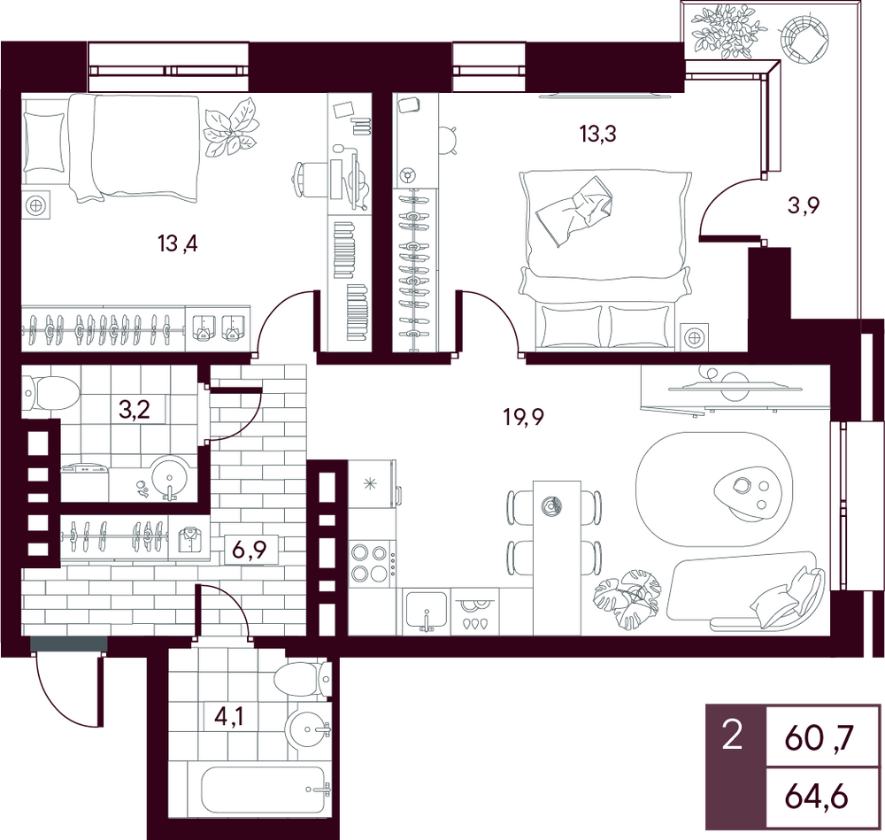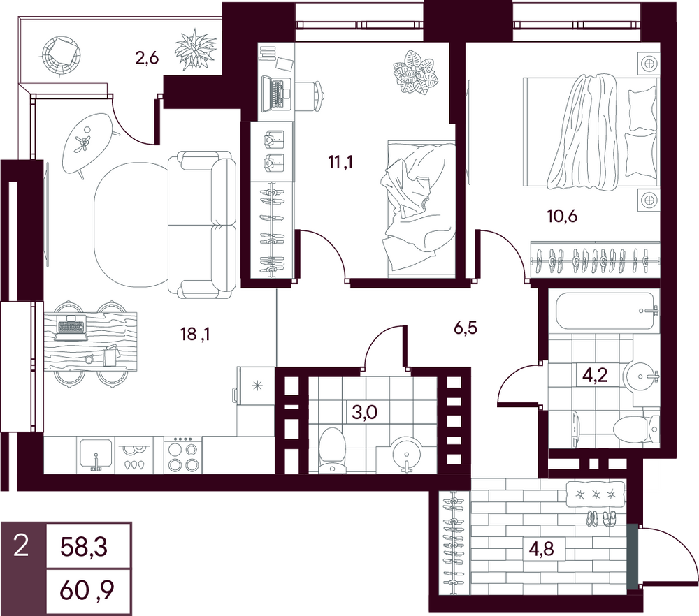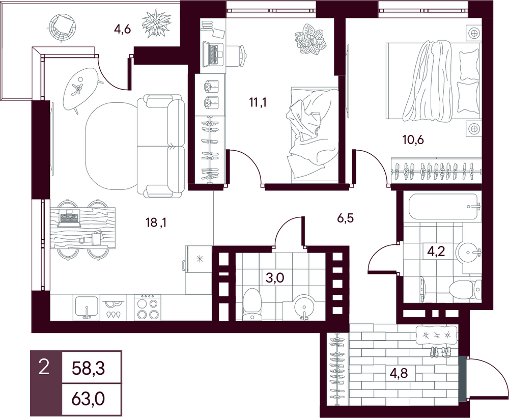- +1 акция№ 9МАКСМАКС ГП 1.1 (1 оч.), Секция 1, Этаж 2