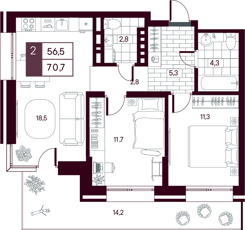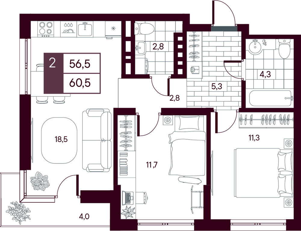 - +1 акция№ 56МАКСМАКС ГП 1.1 (1 оч.), Секция 1, Этаж 7