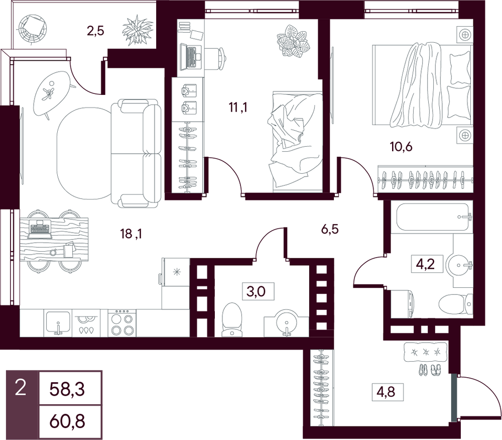 - +1 акция№ 1МАКСМАКС ГП 1.1 (1 оч.), Секция 1, Этаж 2