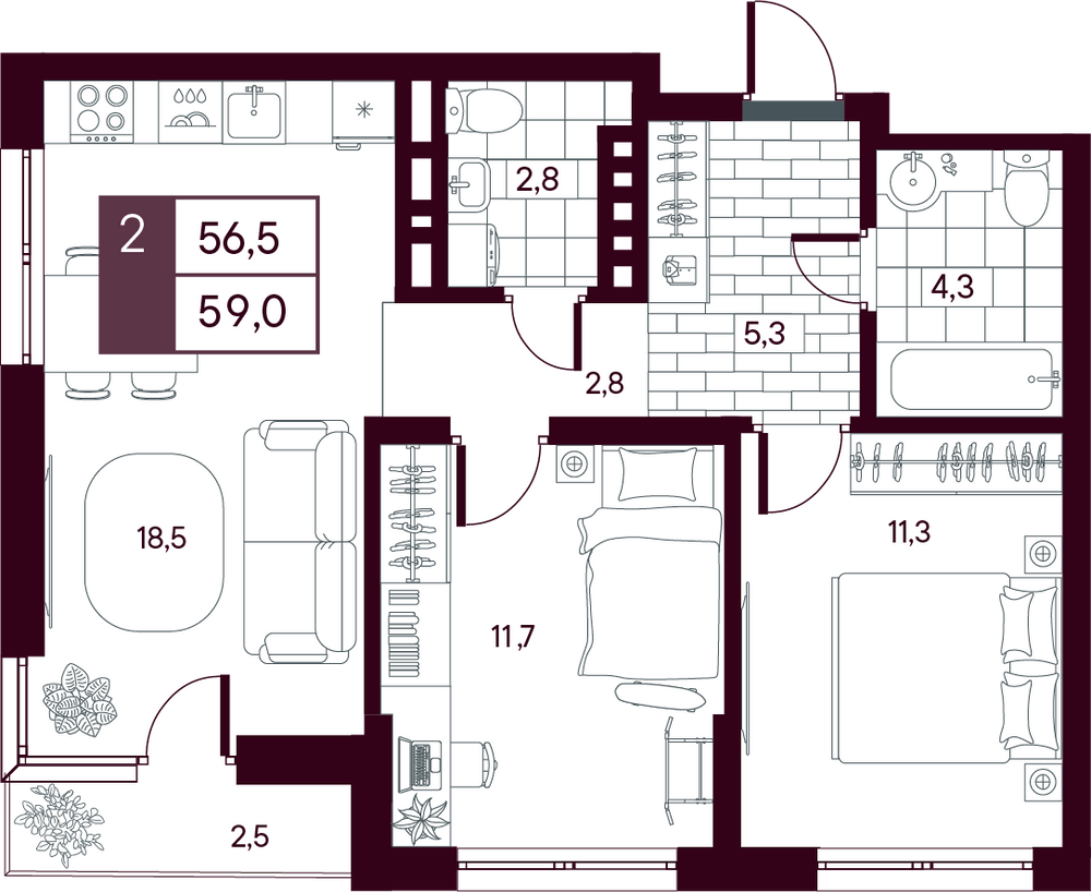 - № 59МАКСМАКС ГП 1.1 (1 оч.), Секция 1, Этаж 7